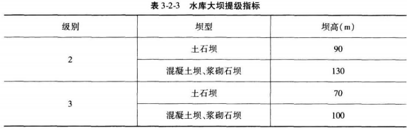 当坝高超过表3.2.3规定的指标时,其级别可提高一级,但洪水标准可不提高。水库工程中最大高度超过200m的大坝建筑物,其级别应为Ⅰ级,其设计标准应专门研究论证,并报上级主管部门审查批准。