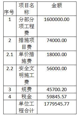 (1)安全文明施工费1600000X 3.5%=56000.00元