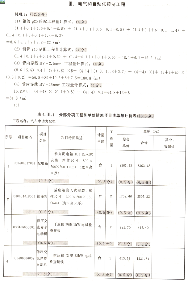 2.动力配电工程的相关定额见下表(本题不考虑焊压铜接线端子工作内容):