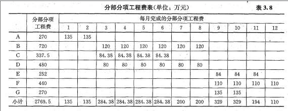 1.计算各分项工程的分部分项工程费、每月完成的分部分项工程费,把计算结果填入纸表3. 8中,并列式计算工程预付款。