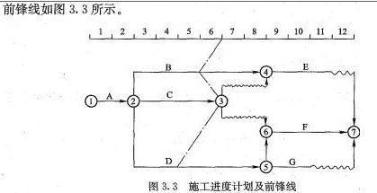 (3)根据时标网络图进行实际进度前锋线的绘制及运用