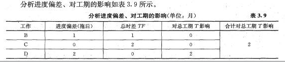 2.根据第6个月末检查结果,在答题纸图3. 3上绘制前锋线,并分析第6个月末B、 C、D三项工作的进度偏差,如果后6个月按原计划进行,分析说明B、D工作对工期的影响。
