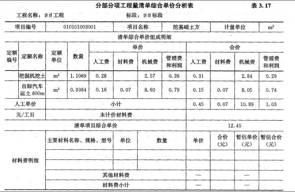 计算挖基础土方的工程量清单综合单价,把综合单价组成和综合单价填人答题纸表3. 17“分部分项工程量清单综合单价分项表”中。