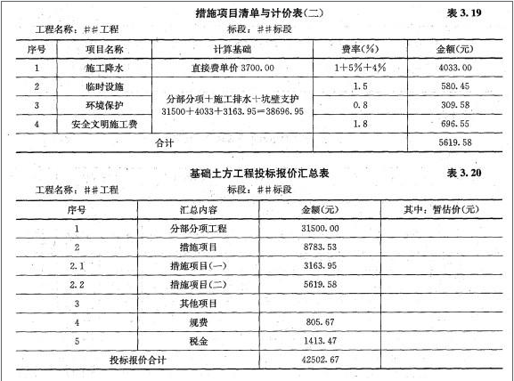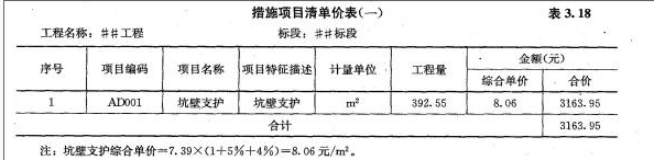 (1)编制挖基础土方的措施项目清单计价表(一)、(二),填入答题纸表3.18、表3.19 “措施项目清单与计价表(一)、(二)”中。并计算其措施项目费合计。