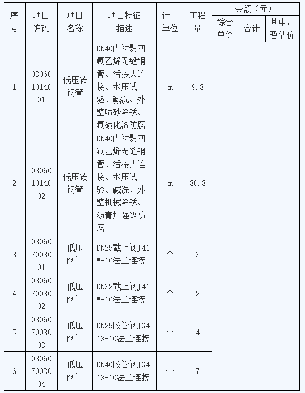 (2)DN40出药内衬聚四氟乙烯无缝钢管工程量计算式: