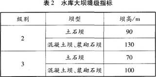 水库及水电站工程的永久性水工建筑物级别,应根据其所在工程的等别和永久性水工建筑物的重要性,按表1确定;水库大坝按上述规定分为2级、3级,如坝高超过表2规定的指标时,其级别可提高一级,但洪水标准可不提高。