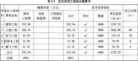 (3)若类似工程预算中,其他专业单位工程预算造价占单项工程造价比例如表3-2所示,利用问题2的结果计算该住宅工程的单项工程造价,编制单项工程综合概算书。
