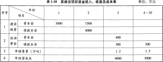 6.项目的资金投入、收益、成本等基础数据,见表1-18。