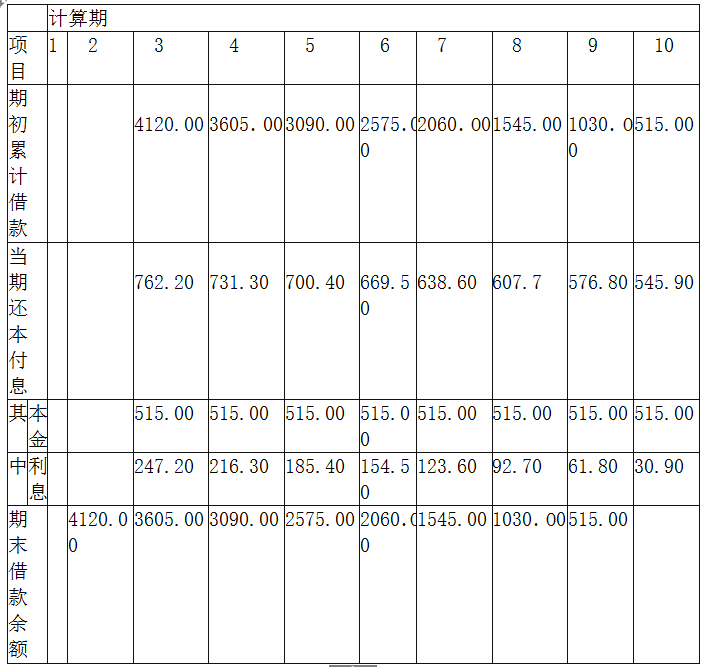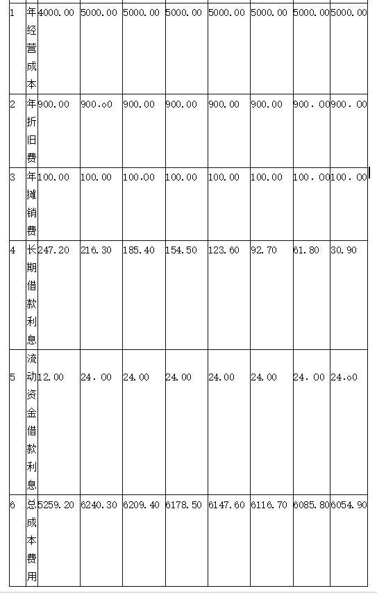 7.还款方式:在项目运营期间按等额本金法偿还,流动资金贷款每年付息,运营期末还本。长期贷款利率为6%,流动资金贷款利率为4%,均按年计息。