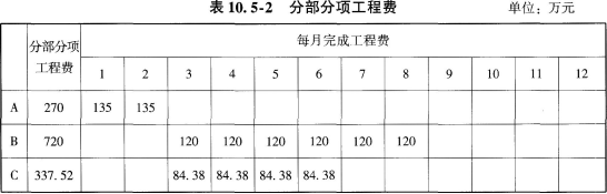 经监理工程师批准的进度计划,如图10.5-1所示(各分项工程各月计划进度和实际进度均为匀速进展)。