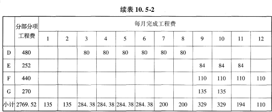 1.计算各分项工程的分部分项工程费、每月应完成的分部分项工程费,把计算结果填入表10.5-2中,并列式计算工程预付款。