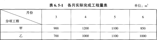 承包商各月实际完成(经业主确认)的工程量,见表6.5-1。