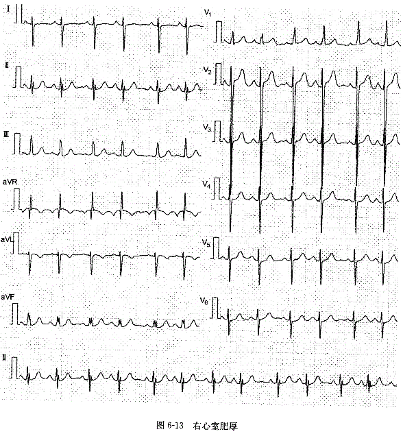 导联R/S<1;aVR导联呈qR型,R波>0.5mV;QRS电轴右偏;V