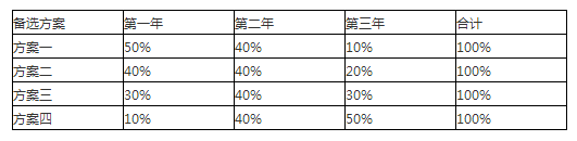 (2019年真题)某施工单位拟投资一项目,在投资总额和年收益不变的情况下,四个备选方案各年投资比例如下表(投资时点均相同),则对该单位较为有利的方案是()。