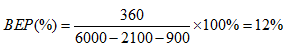 某项目设计年产量为6万件,每件售价为1000元,单位产品可变成本为350元,单位产品营业税金及附加为150元,年固定成本为360万元,则用生产能力利用率表示的项目盈亏平衡点为( )。
