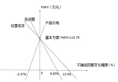 根据原来的评价指标和不确定因素变动后的评价指标值,画出敏感性分析直线图,每一条直线的斜率反映技术方案经济效果的评价指标对该不确定因素的敏感程度,斜率越大敏感度越高。