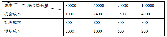 由计算可知,当现金持有量为30000元时,持有成本最小,为企业该时期的最佳现金持有量。