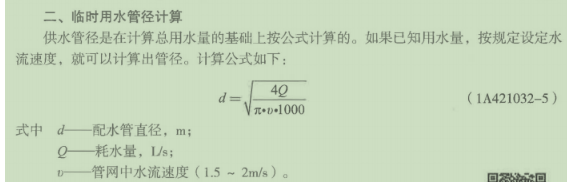 (2019真题)某临时用水支管耗水量A=1.92L/s,管网水流速度V=2m/s,则计算水管直径d为( )。