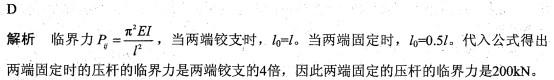 受压构件,两端铰支,其临界力为50kN,若将构件改为两端固定,则其临界力为( )kN。