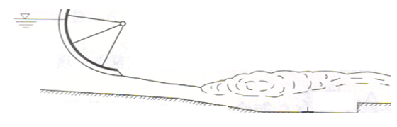 本题考查的是消能方式。图中是利用水跃消能,将泄水建筑物泄出的急流转变为缓流,以消除多余动能的消能方式,属于底流消能。