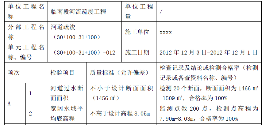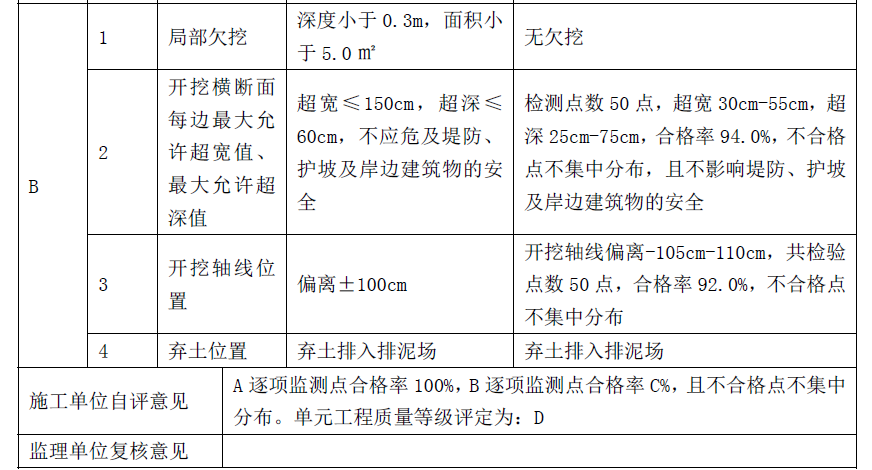 事件3:河道疏浚工程施工中,施工单位对某单元工程进行了质量评定,如表所示。