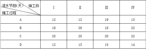 事件一:施工单位将施工作业划分为 A、B、C、D 四个施工过程,分别由指定的专业班组进行施工,每天一班工作制,组织无节奏流水施工,流水施工参数见下表: