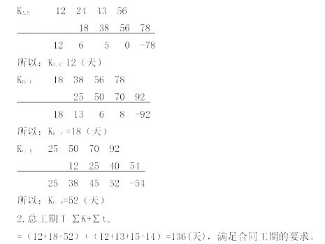 根据上表数据,按照累加数列错位相减取大差法,确定流水步距: