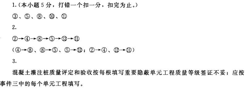 事件三:主泵房基础灌注桩共72根,项目划分为一个分部工程且为主要分部工程,该 分部工程划分为12个单元工程,每个单元工程灌注桩根数为6根。质量监督机构批准了该 项目划分,并提出该灌注桩为重要隐蔽单元工程,要求质量评定和验收时按每根灌注桩填 写重要隐蔽单元工程质量等级签证表。