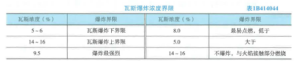 表1B414044瓦斯爆炸浓度界限9.5%瓦斯爆炸最强烈
