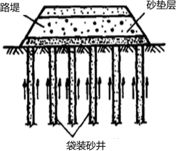 本题考核的是软土地基处理施工技术。软土地基处理施工中,袋装砂井施工工艺程序:整平原地面→摊铺下层砂垫层→机具定位→打入套管→沉入砂袋→拔出套管→机具移位→埋砂袋头→摊铺上层砂垫层。