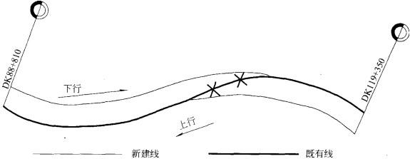 某铁路复线工程两个车站之间的示意图如下,业主要求下行方向先开通。