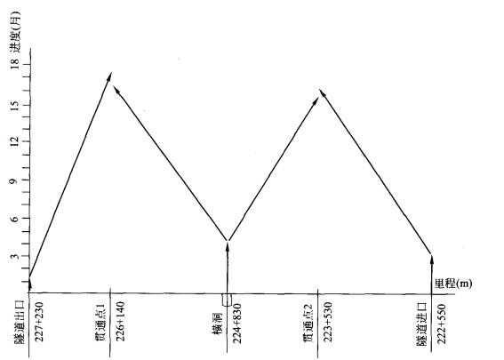 5.该隧道的施工形象进度示意图(时间一里程图)见下图。