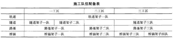2.在满足合同工期和铺轨期限的条件下,对合同段内各工程类别进行施工队伍配备。