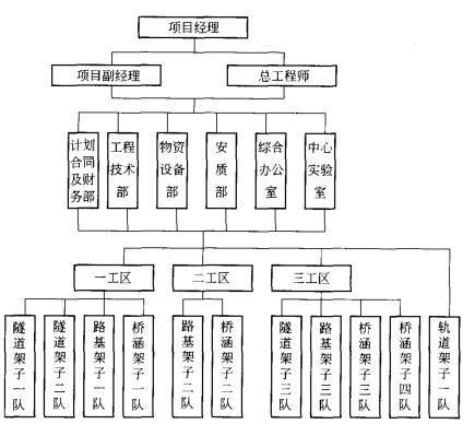 该合同段工程任务较大,现场组织机构的设置分为三个层次:项目管理层、工区管理层、施工队。