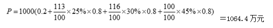 某项目2012年5月1日签署合同价1000万,合同约定固定系数0.2。2013年5月1日结算时发现,钢材涨价13%,水泥涨价16%,其中钢材和水泥分别占调值部分的比例分别为25%和30%。求结算价