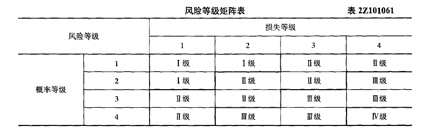 表2Z101061中的风险为极小,中度损失的风险等级为2