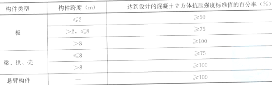 在《混凝土结构工程施工质量验收规范》GB50204-2002第4.3.1条中,对构件底模拆除时其混凝土强度要求如下: